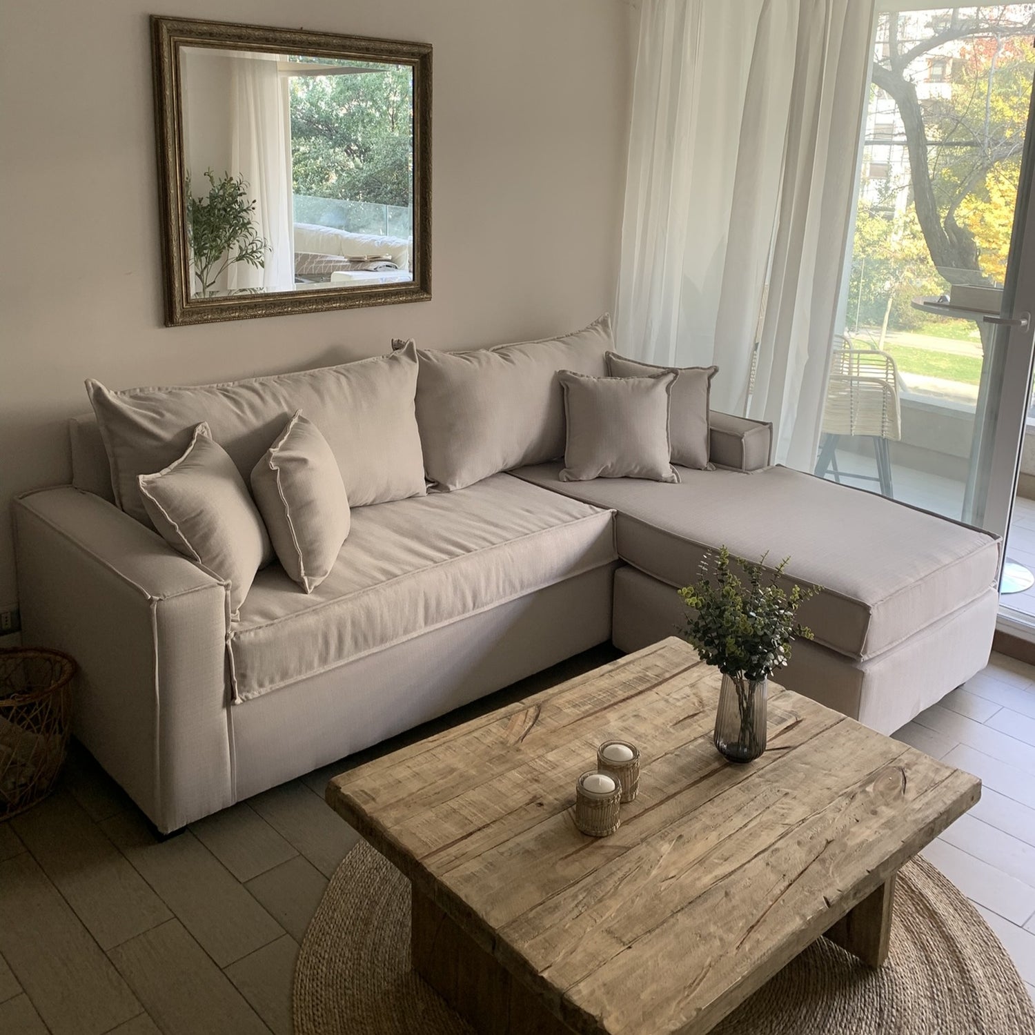 Sofá Seccional Gambito XL Intercambiable de 5 Cuerpos con Resortes Color Beige con Cojines Decorativos de Regalo