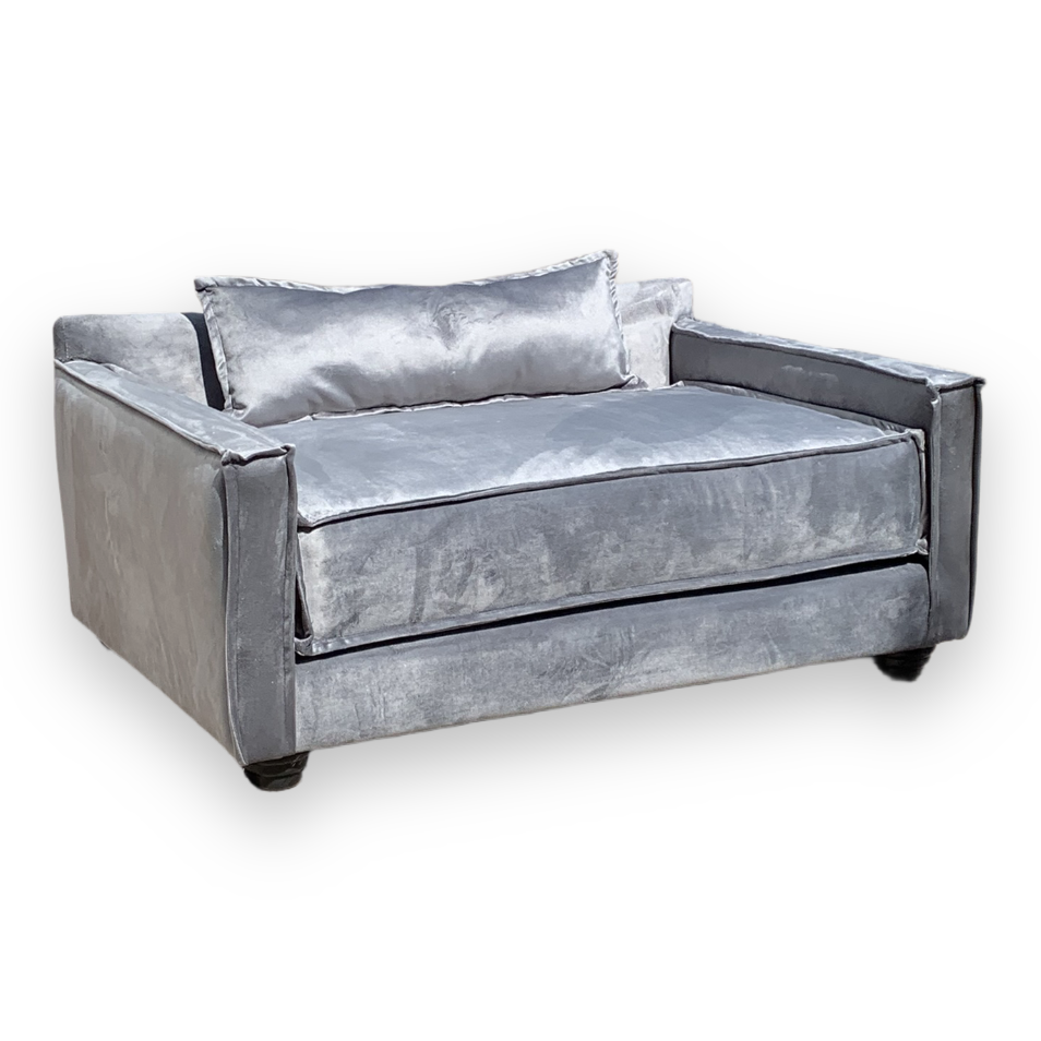 Dale a tu perrito una razón para bajarse del sofá! Con esta cama-sofá Homero con asiento de resortes! Es muy cómoda y elaborada en base al diseño de nuestro popular sofá Homero. Te garantizamos que la amará!